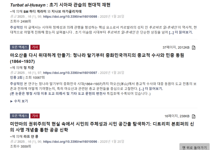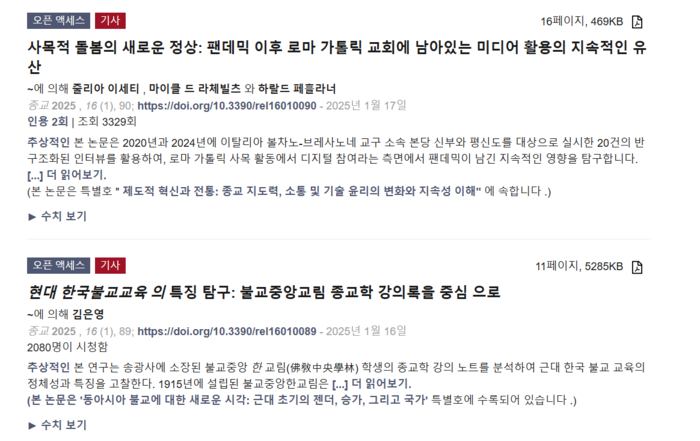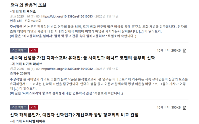 김강산 박사가 게재한 2025년 Religions저널의 내용을 보면 대부분 종교학적인 내용이다. 불교, 이슬람, 노자, 장자, , 카톨릭 신학과 관련한 종교학적인 내용이 다수를 이룬다.