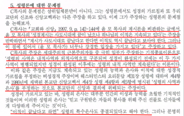 최삼경은 교회와 신앙 1997.142-144p 에서 "계시가 사도시대로 끝났다고 보면 이적도 역시 끝났다고 보아야 한다" 기적종료설을 주장한다며 비판하기도 했다.