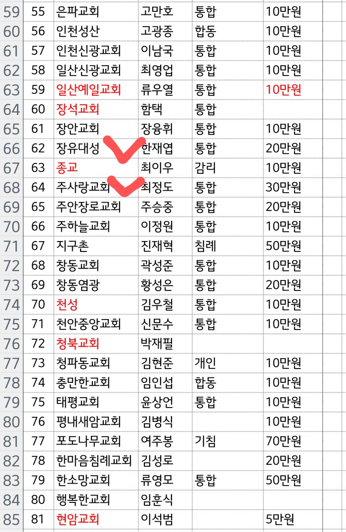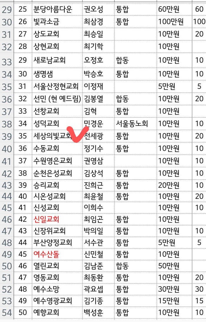 교회와 신앙 불법공범 교회명단(장신대 이사 포함)(후원금 매달 금액)