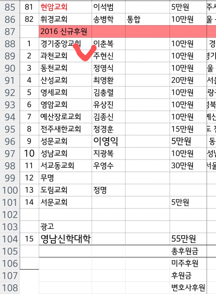 화곡동교회, 당회에서 교회와 신앙에 매달 100만원씩 후원 결의해야