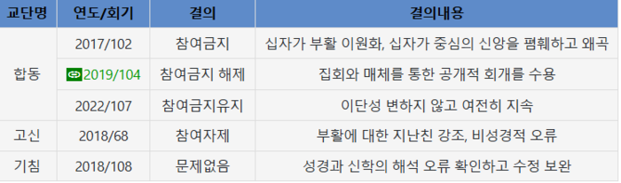 그러나 후원을 하지 않은 다른 교단은 김성로에 대해 참여금지, 이단성으로 비판받는다. 돈을 주지 않으면 이렇게 되는 것이다. 한국의 이단 감별은 돈이 기준이다.