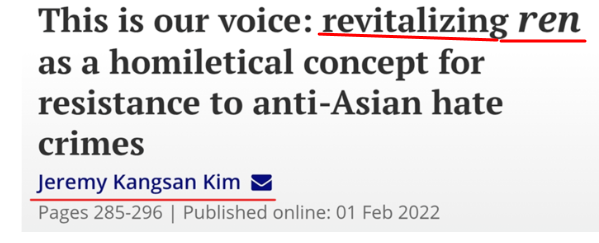 "본 논문은 레비나스의 윤리학 프로젝트에서 논란이 되는 부분들을 완화하는 대안적 개념으로서, 인(仁)에 내재된 독특한 타자성 개념, 특히 자비심(惻隱之心, ceyin zhi xin )과 의(義,義)의 본질을 탐구합니다 . 나아가 필자는 설교에서 인(仁)을 되살려 자비와 저항의 실천을 성경적 애도의 역동성과 결합시키는 설교 전략을 제시합니다."