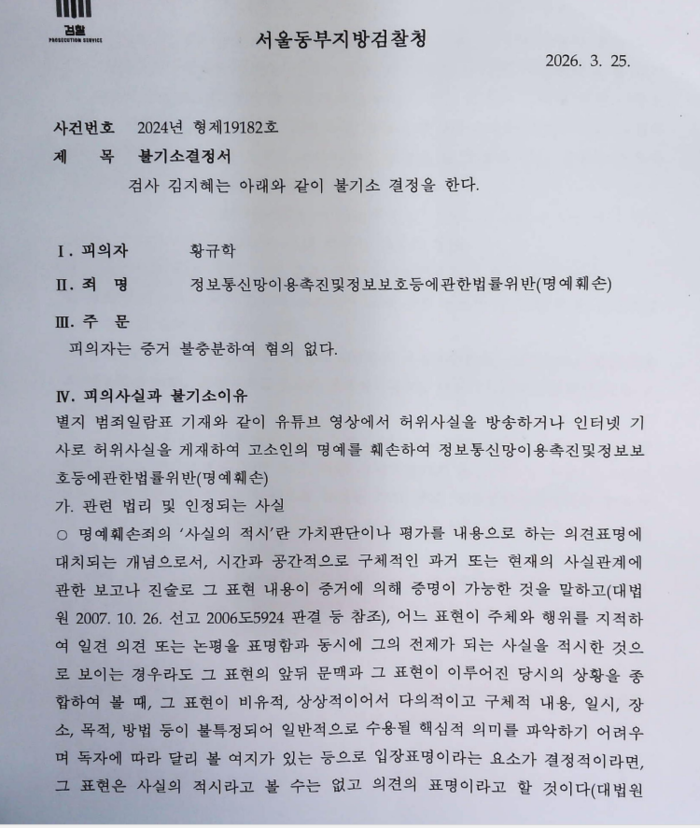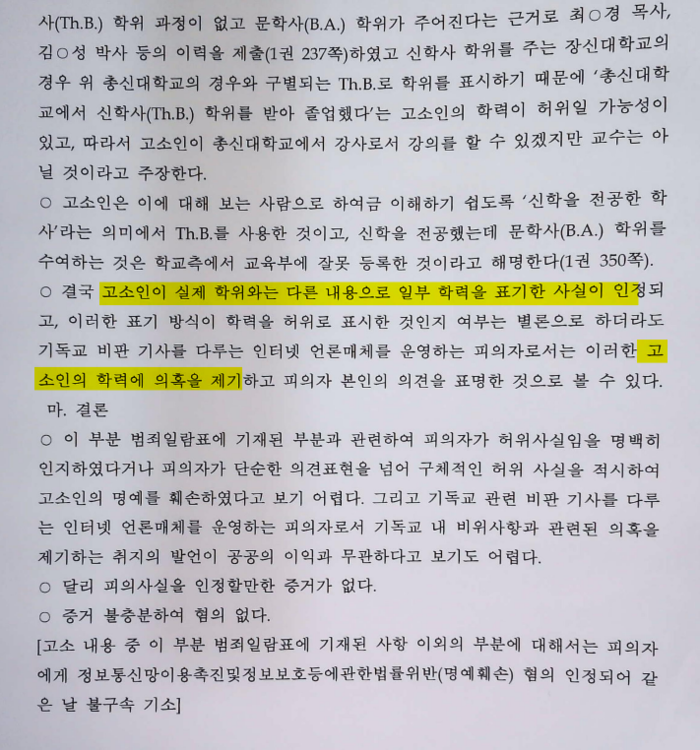 공공의 이익으로 무혐의 내용을 보면 크게는 학력, 교수사칭, 이단성 교리, 물질 관계이다. 나머지도 대부분 물질과 관련한 부분이다.