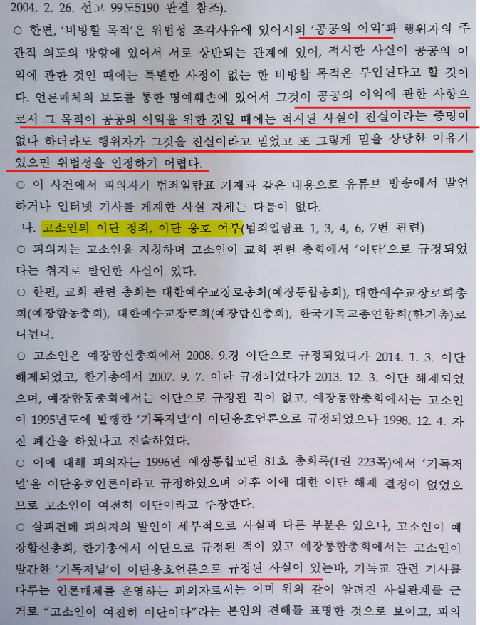 중요한 것은 그의 지위사칭과 금품관계(이단감별사 돈으로 매수)에 대한 것이 무혐의 처분되어 그를 비정상인으로 본 것으로 드러났고 비정상인이 행동한 다른 물질적인 행위도 비정상적인 행동으로 몰고가면 다투어볼만하다.